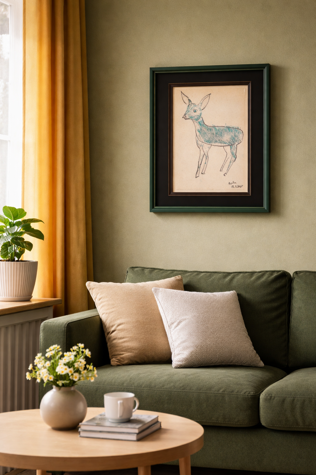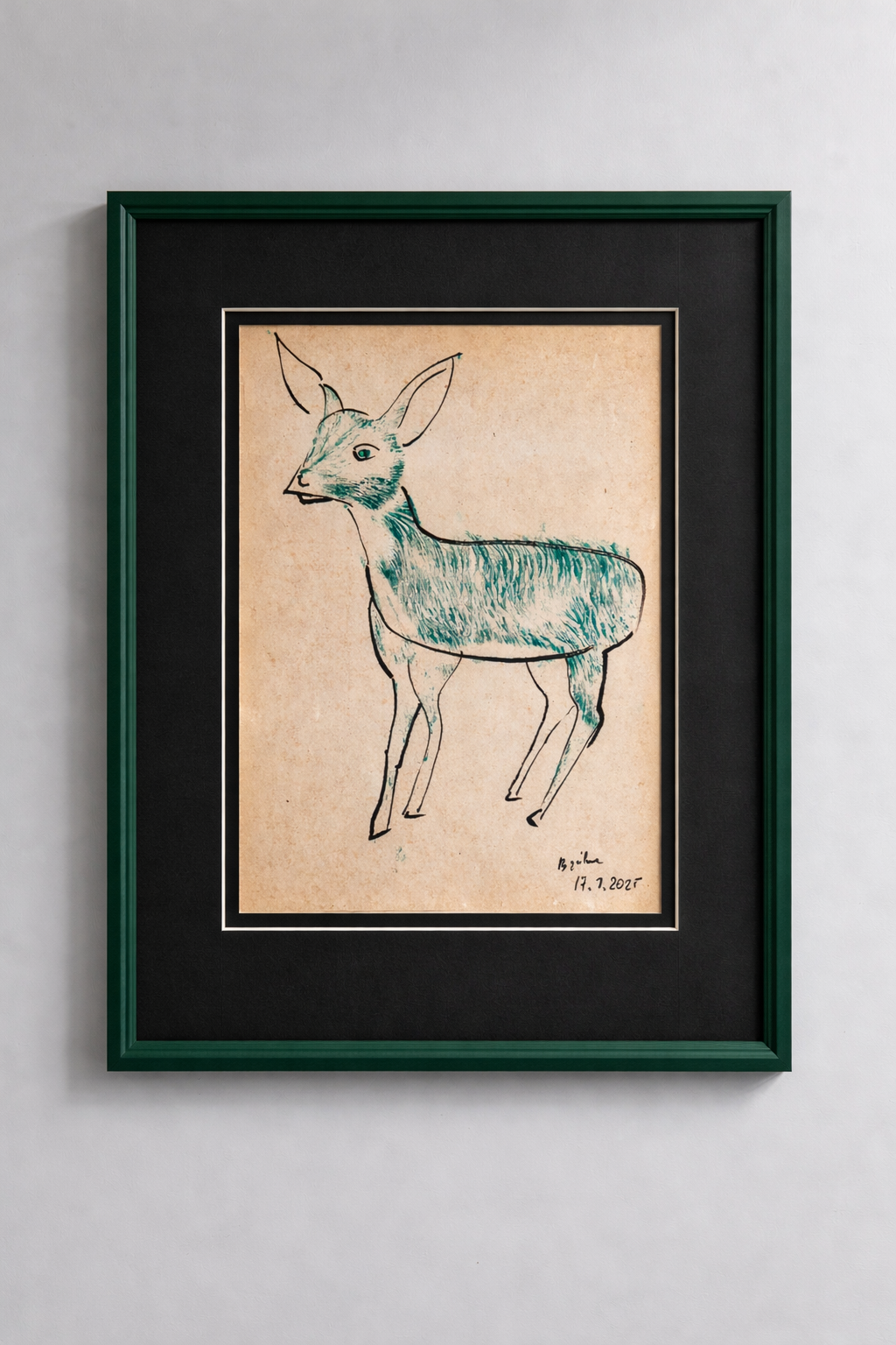 Centralna postać jelonka nie jest jedynie przedstawieniem zwierzęcia. To znak niewinności — kruchej, cichej obecności, która zbyt często zostaje niezauważona lub zlekceważona. W tej pracy jelonek patrzy — nie oskarża, lecz istnieje. Jego spojrzenie staje się przestrzenią pamięci.